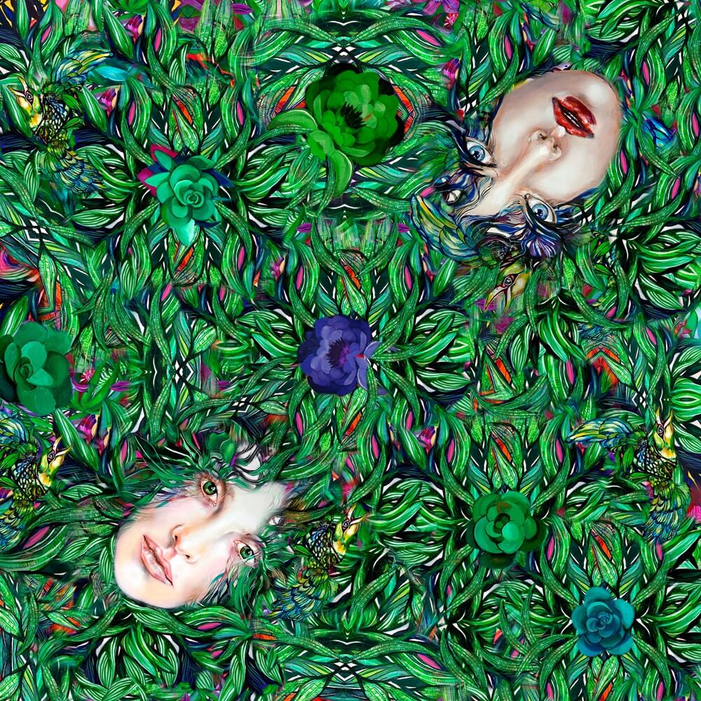 Grafika jest kompozycją motywów z kilku obrazów artystki pochodzących z cyklu prac „Raj Utracony” i tworzy jednorodny kolaż. Każda z czterech narożnych części chusty jest inna, co umożliwia kreatywne jej zastosowanie i wybór eksponowanego motywu.
