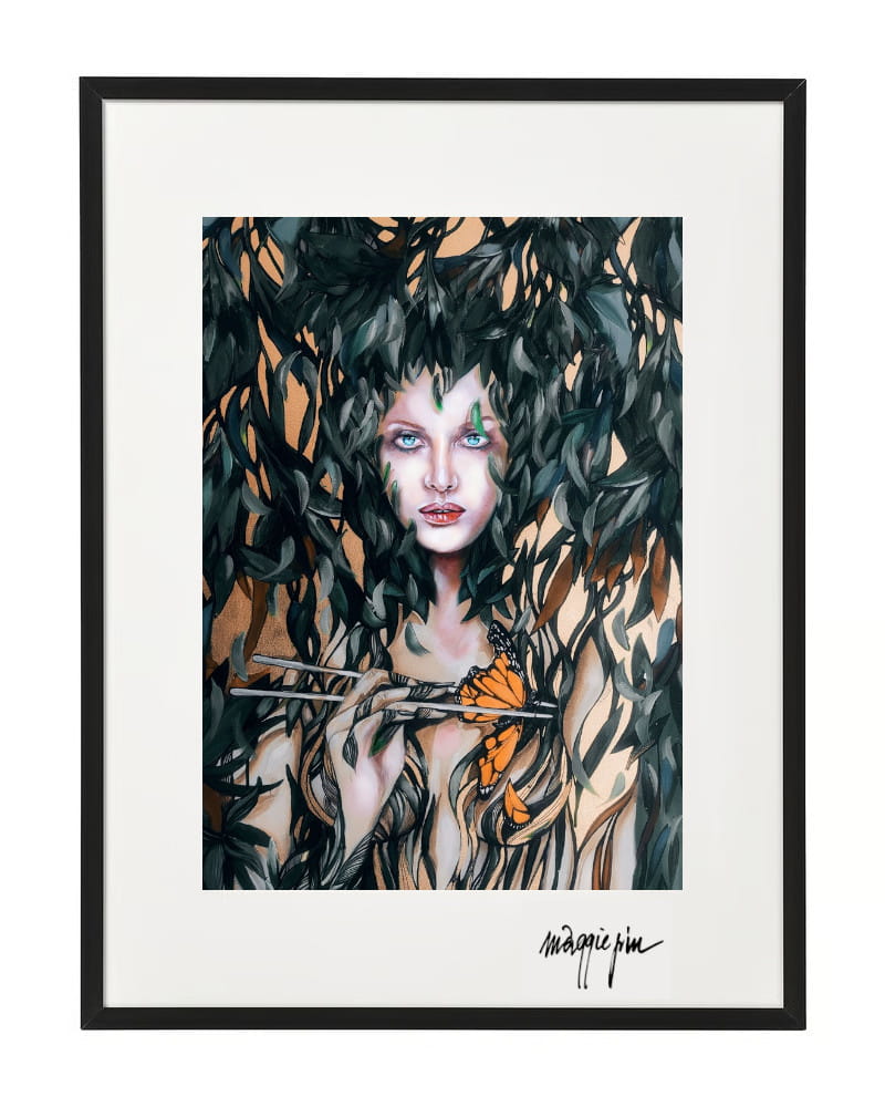 Ten druk artystyczny to elegancka reprodukcja obrazu „Szuwarnica i Monarcha II” autorstwa Maggie Piu, przygotowana z myślą o tych, którzy chcą wprowadzić do swojego wnętrza subtelny, artystyczny akcent. Wydruk wykonany jest na wysokiej jakości papierze formatu A4, starannie oprawiony w passe-partout o ciepłej bieli oraz minimalistyczną czarną ramę aluminiową, dzięki czemu produkt jest gotowy do zawieszenia.