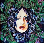 "Heterozja Tomepa", 80x80 cm, tech-mix (akryl, digital, tusz), obraz Maggie Piu z serii Heterozje. Idea techmix wykorzystywana w seriach Heterozje i Hybrydy polega na łączeniu kilku moich obrazów w jeden."Heterozja Tomepa" to zmixowane "Tosca", "Medusa", "Papil".