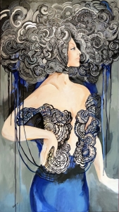 Obraz Maggie Piu wykonany w technice mieszanej na bazie giclee, druku na płótnie jako podkładu, wykończony następnie przez malarkę ręcznie (akryl, złocenia, srebrzenia, tusz, farby inne i techniki własne artystki) - dostępny na zamówienie w dowolnych rozmiarach.