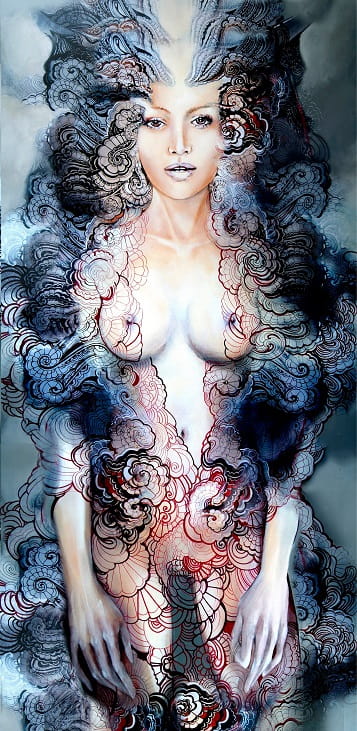 Kultowy obraz Maggie Piu "Carmen Freewolna", akryl na płótnie, 70x170 cm.
