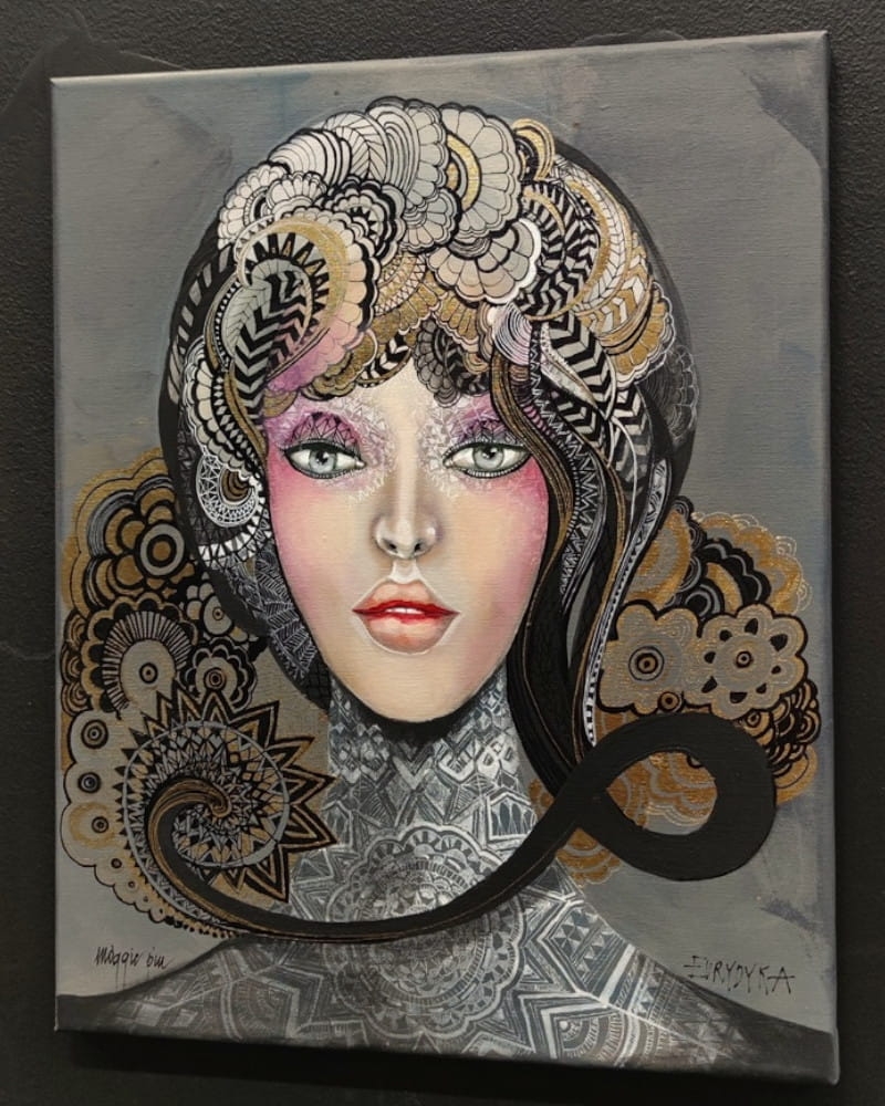 Obraz Eurydyka to unikatowe dzieło autorstwa Maggie Piu, wykonane techniką akrylową na płótnie. Praca stanowi współczesną, malarską interpretację mitologicznej postaci, ujętą w charakterystycznym dla artystki stylu łączącym dekoracyjność secesji z nowoczesną kreską.