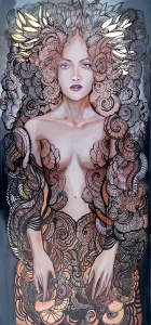 Obraz Maggie Piu "Freewolna Siostra Carmen", akryl na płótnie, 70x150 cm.