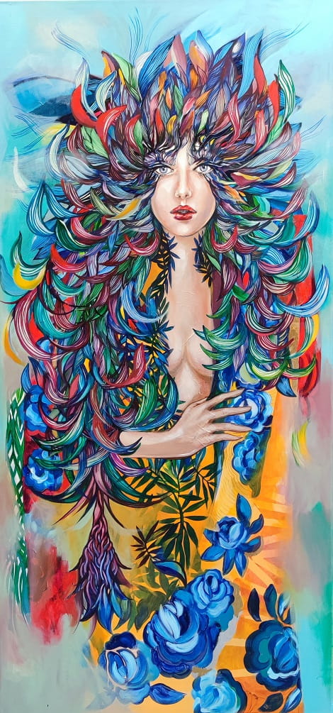 Obraz oryginał - Lady Kaczka i Mandarynka 2022 - 80x170 cm - Maggie Piu - akryl na płótnie