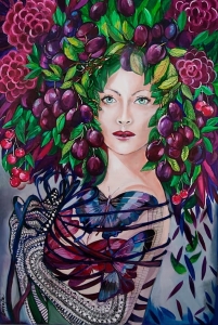 Obraz Maggie Piu "Madame Motyl", akryl na płótnie, 60x90 cm, oryginał z serii "Kobiety Klatki", 2020 r.