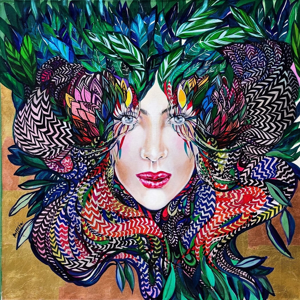Obraz Maggie Piu "Medusa Złota", akryl na płótnie, 80x80 cm.