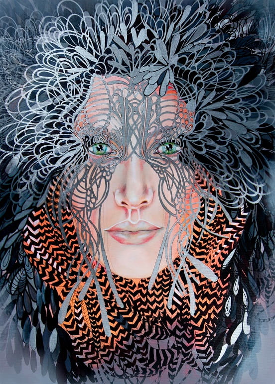Oryginał z cyklu „Medusy”, będącego studium kobiecego piękna wyrażonego w spojrzeniu, rysach twarzy, emocjach i zanurzonego w baśniowej wyobraźni.