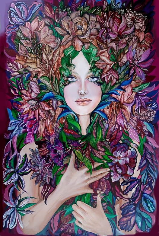 Obraz Maggie Piu "Świtezianka", akryl na płótnie, 60x90 cm, oryginał z serii "Rusałki", 2020 r.
