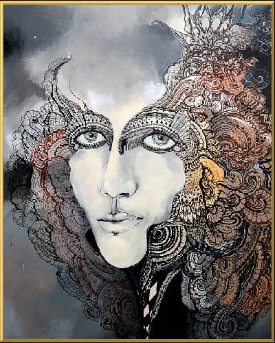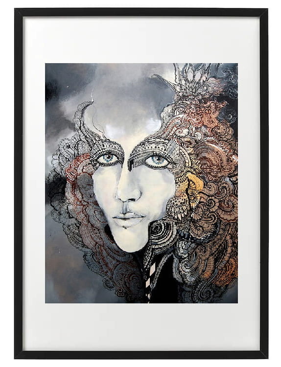 Art-plakat „Anna B” 40/50 cm to kopia obrazu Maggie Piu z cyklu „Główka się stoczy”, poświęconego kobietom, których historia życia skończyła się tragicznie. W rolę Anny Boleyn, Maty Hari czy Królowej Margot wcieliły się ikony światowego modelingu XXI wieku.