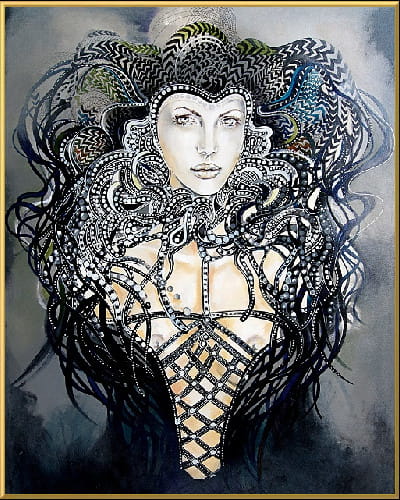 Art-plakat „Faust” 40x50 cm to kopia kultowego obrazu Maggie Piu z cyklu „PopDivy", którego inspiracją była opera, a w rolę głównych bohaterek wcielają się prawdziwe kobiety ze świata współczesnego filmu czy muzyki, ikony popkultury. W obrazie Maggie Piu Angelina Jolie wystąpiła jako Małgorzata, bohaterka opery Charles'a Gounoda inspirowanego pierwszą częścią dramatu Goethego "Faust".