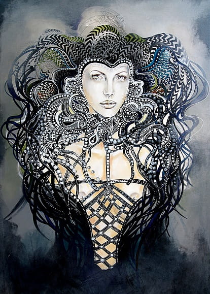 Art-plakat „Faust” 70/100 cm to kopia kultowego obrazu Maggie Piu z cyklu „PopDivy", którego inspiracją była opera, a w rolę głównych bohaterek wcielają się prawdziwe kobiety ze świata współczesnego filmu czy muzyki, ikony popkultury. W obrazie Maggie Piu Angelina Jolie wystąpiła jako Małgorzata, bohaterka opery Charles'a Gounoda inspirowanego pierwszą częścią dramatu Goethego "Faust".