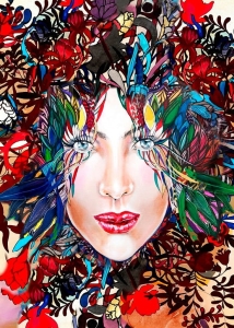 Art-plakat „Kolor 4” vel "Multicolor" 70/100 cm to kopia obrazu Maggie Piu z cyklu „Medusy”, będącego studium kobiecego piękna wyrażonego w spojrzeniu, rysach twarzy, emocjach i zanurzonego w baśniowej wyobraźni.