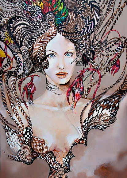 Art-plakat „Kundry-1” 70/100 cm to kopia obrazu Maggie Piu z cyklu „PopDivy", którego inspiracją była opera, a w rolę głównych bohaterek wcielają się prawdziwe kobiety ze świata współczesnego filmu czy muzyki, ikony popkultury.