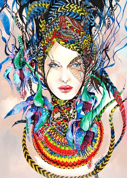 Art-plakat „Kundry 2” 70/100 cm to kopia obrazu Maggie Piu z cyklu „PopDivy", którego inspiracją była opera, a w rolę głównych bohaterek wcielają się prawdziwe kobiety ze świata współczesnego filmu czy muzyki, ikony popkultury.