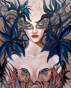 Art-plakat „Luto” 40x50 cm to kopia obrazu Maggie Piu z cyklu „Raj Utracony", zanurzonego w bogatej, kolorowej, roślinnej i kwiatowej ornamentyce, będącym wyrazem tęsknoty do Edenu.