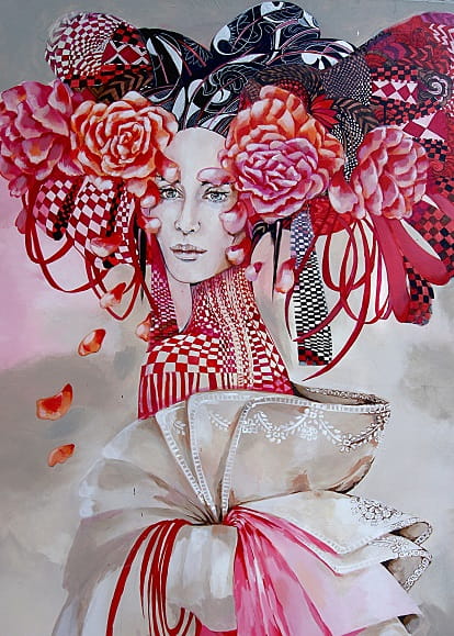 Art-plakat „Madame Butterfly” 70/100 cm to kopia obrazu Maggie Piu z cyklu „PopDivy", którego inspiracją była opera, a w rolę głównych bohaterek wcielają się prawdziwe kobiety ze świata współczesnego filmu czy muzyki, ikony popkultury.