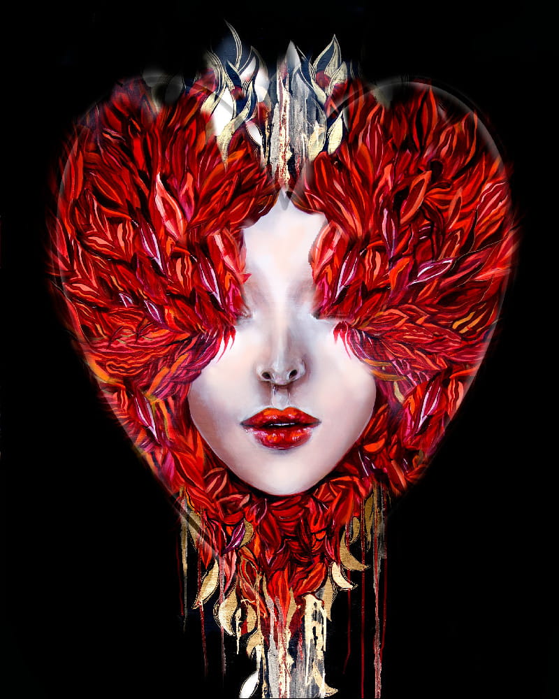 Art-plakat „Medusa Miłość jest ślepa” 40x50 cm to kopia obrazu Maggie Piu z cyklu „Medusy Uczucia”.