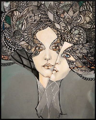 Art-plakat „Mistrz i Małgorzata 2” 40x50 cm to kopia obrazu Maggie Piu z cyklu „Główka się stoczy”, poświęconego kobietom, których historia życia skończyła się tragicznie. W rolę Anny Boleyn, Maty Hari czy Królowej Margot wcieliły się ikony światowego modelingu XXI wieku.