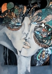 Art-plakat „Mistrz i Małgorzata” 70/100 cm to kopia kultowego obrazu Maggie Piu z cyklu „Główka się stoczy”, poświęconego kobietom, których historia życia skończyła się tragicznie. W rolę Anny Boleyn, Maty Hari czy Królowej Margot wcieliły się ikony światowego modelingu XXI wieku.