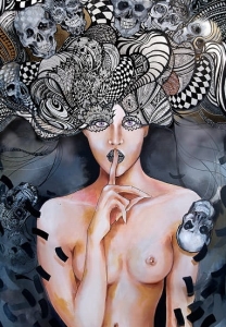 Art-plakat „Pożegnanie Aleksandra” 70/100 cm to kopia kanonicznego obrazu Maggie Piu z cyklu „Fashion Games”, inspirowanego światem mody.