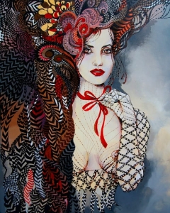 Art-plakat „Traviata” 40x50 cm to kopia obrazu Maggie Piu z cyklu „PopDivy", którego inspiracją była opera, a w rolę głównych bohaterek wcielają się prawdziwe kobiety ze świata współczesnego filmu czy muzyki, ikony popkultury.