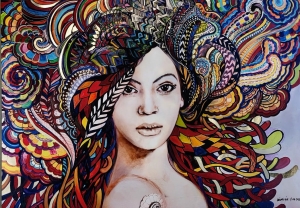 Art-plakat „Madame Butterfly Multicolor” 100/70 cm to kopia kanonicznego obrazu Maggie Piu z cyklu „PopDivy", którego inspiracją była opera, a w rolę głównych bohaterek wcielają się prawdziwe kobiety ze świata współczesnego filmu czy muzyki, ikony popkultury. W roli Cio-cio-san vel Butterfly, głównej bohaterki opery Giacoma Pucciniego w obrazie Maggie Piu została obsadzona Beyonce.