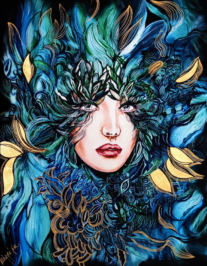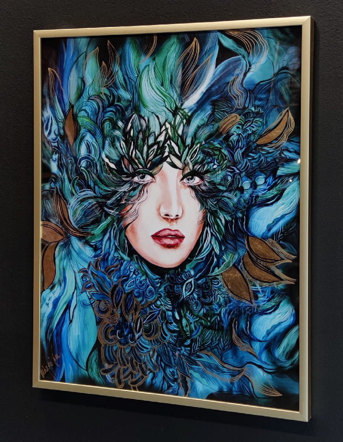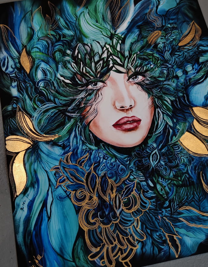 indywidualnie zdobiony, ręcznie wykończony farbami przez Maggie Piu. Bazując na podstawowej wersji plakatu Malachitowa Medusa Mayo - 40x50 cm autorka domalowuje złocenia, tworząc efektowny wizualnie ręcznie zdobiony egzemplarz kolekcjonerski. Istnieje możliwość dedykacji oraz zmiany formatu.
