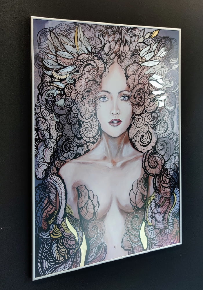 zdobiony plakat 50x70 cm - Freewolna Siostra Carmen Silver - ręcznie wykończona przez Maggie Piu reprodukcja obrazu