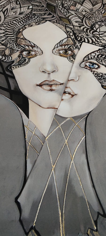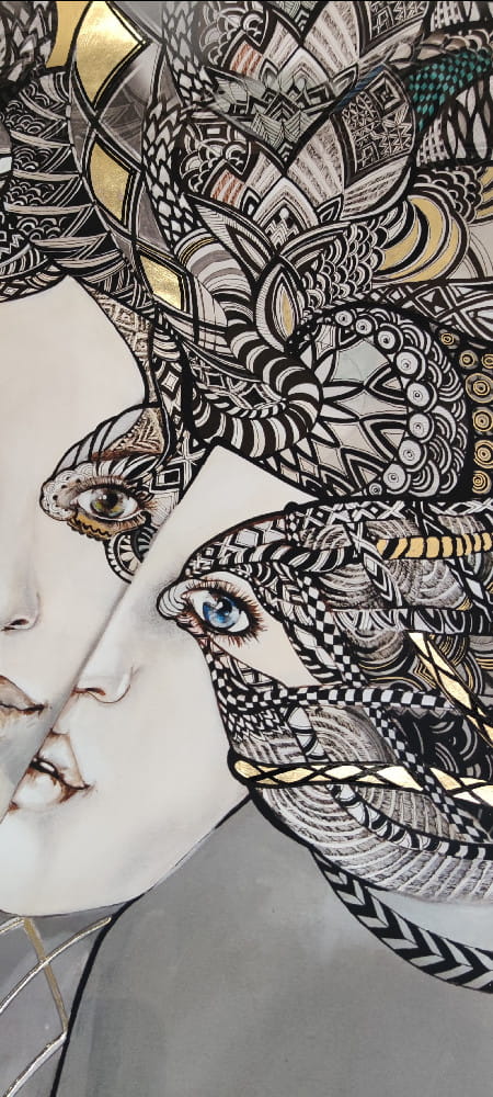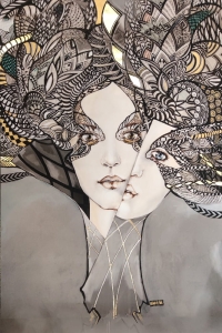 Art-plakat „Mistrz i Małgorzata 2” 60x90 cm to kopia obrazu Maggie Piu z cyklu „Główka się stoczy”, poświęconego kobietom, których historia życia skończyła się tragicznie. W rolę Anny Boleyn, Maty Hari czy Królowej Margot wcieliły się ikony światowego modelingu XXI wieku.