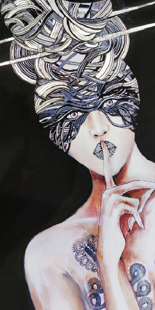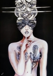 Art-plakat „Aleksander, Hej! Silver” 70x100 cm to kopia obrazu Maggie Piu łączącego motywy modowe z folklorystycznymi, nawiązującym do obrazu "Pożegnanie Aleksandra", z cyklu „Fashion Games”, inspirowanego światem mody.