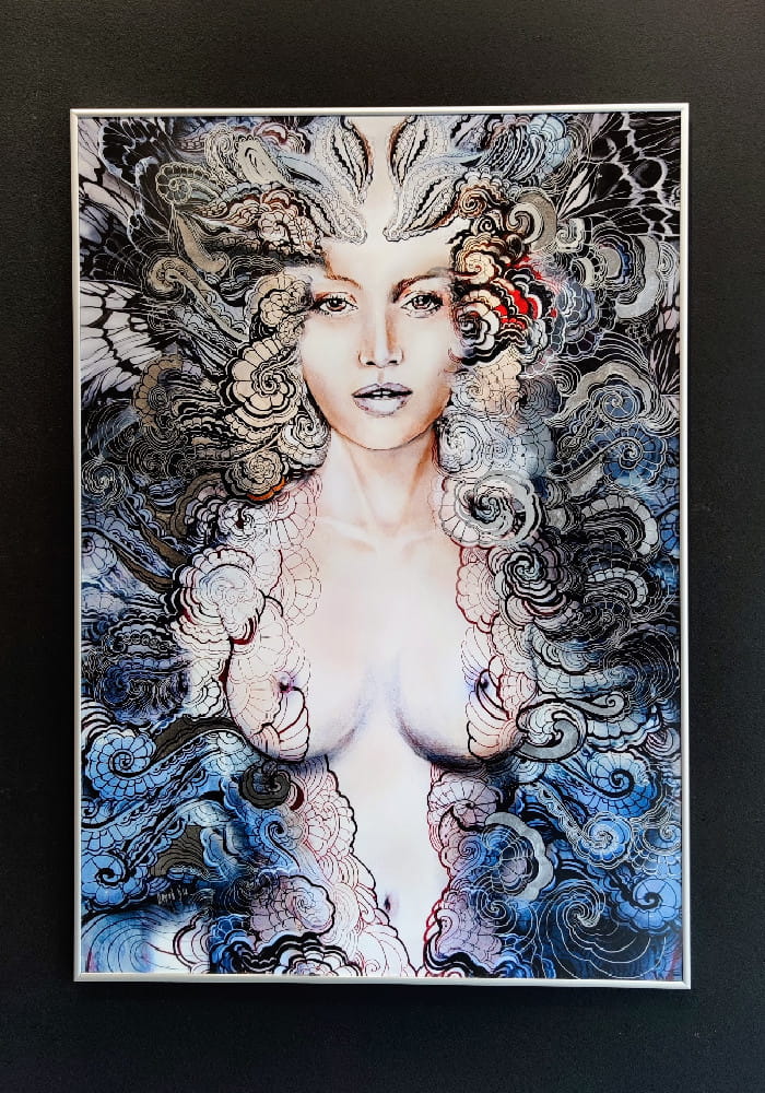indywidualnie zdobiony, ręcznie wykończony przez Maggie Piu. Bazując na podstawowej wersji plakatu Carmen Freewolna Silver -70x100 cm autorka domalowuje elementy graficzne, tworząc efektowny wizualnie ręcznie zdobiony egzemplarz kolekcjonerski. Istnieje możliwość dedykacji oraz zmiany formatu.