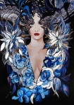 Art-plakat „Goldiva Szafiro Silver” 70/100 cm to kopia obrazu Maggie Piu z cyklu „Goldivy”, barokowej, bogatej zdobniczo, złotej serii inspirowanej między innymi wzorami z dawnych tkanin, w której pojawiają się również rozmaite motywy stale obecne w twórczości Maggie Piu.