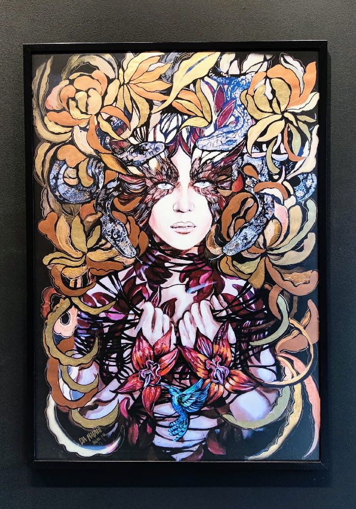 indywidualnie zdobiony, ręcznie wykończony farbami przez Maggie Piu. Bazując na podstawowej wersji plakatu Lady Hebi -70x100 cm autorka domalowuje złocenia, tworząc efektowny wizualnie ręcznie zdobiony egzemplarz kolekcjonerski. Istnieje możliwość dedykacji oraz zmiany formatu.