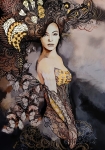 Art-plakat „Madame Butterfly Grey Gold” 70/100 cm to kopia kanonicznego obrazu Maggie Piu z cyklu „PopDivy", którego inspiracją była opera, a w rolę głównych bohaterek wcielają się prawdziwe kobiety ze świata współczesnego filmu czy muzyki, ikony popkultury. W roli Cio-cio-san vel Butterfly, głównej bohaterki opery Giacoma Pucciniego w obrazie Maggie Piu została obsadzona Beyonce.
