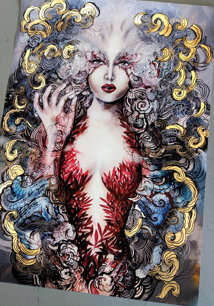 Art-plakat „Pet-Carmen Gold” 70/100 cm to kopia obrazu Maggie Piu z serii "Grzechy - Freewolne Pastereczki".