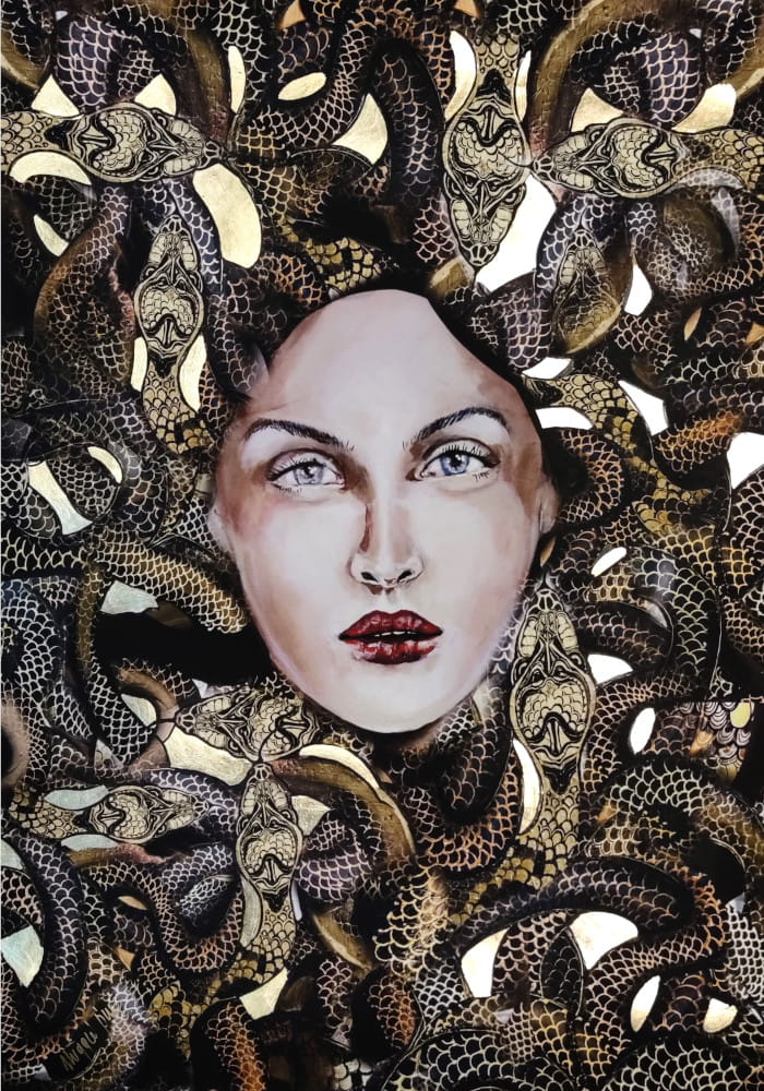 zdobiony plakat 70x100 cm - Wężownica Meduza - ręcznie wykończona przez Maggie Piu reprodukcja obrazu